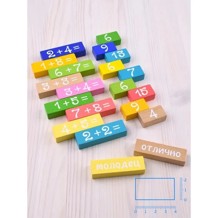 Деревянные кубики «Решаем примеры» — это увлекательный способ познакомить ребёнка с азами счёта и сложения в игровой форме. В наборе 36 элементов, которые помогают освоить базовые математические навыки, сочетая обучение с развлечением для детей от 3 лет.