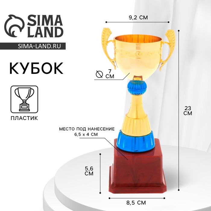 Кубок 180B, наградная фигура, золото, подставка пластик, триколор, 38,5 × 15 × 8 см. — Характеристики