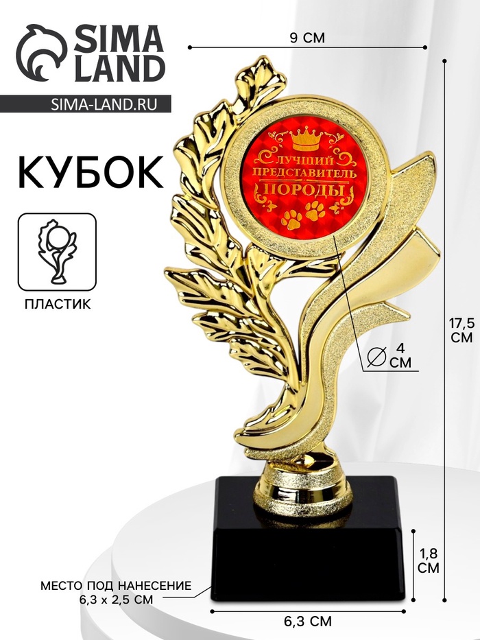 Кубок «Лучший представитель породы», 17.5 см станет самым лучшим подарком! Он выполнен из пластика, покрыт золотой краской, дополнен яркой цветной бляшкой, из бумаги с голографией. Прозрачная пластиковая коробка с тиснением прекрасно дополняет кубок, а с обратной стороны вы найдёте тёплые слова и пожелания для вашего адресата.