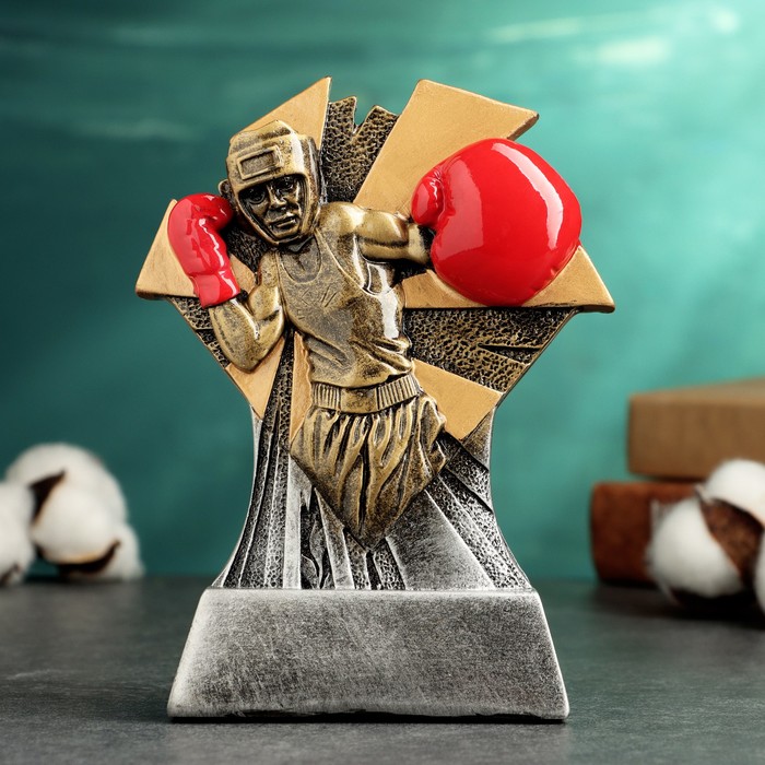 Золотистая фигура «Оскар» с лавровым венком в руках дополнена пластиковой подставкой. На постаменте есть яркий голографический шильд со званием получателя награды.