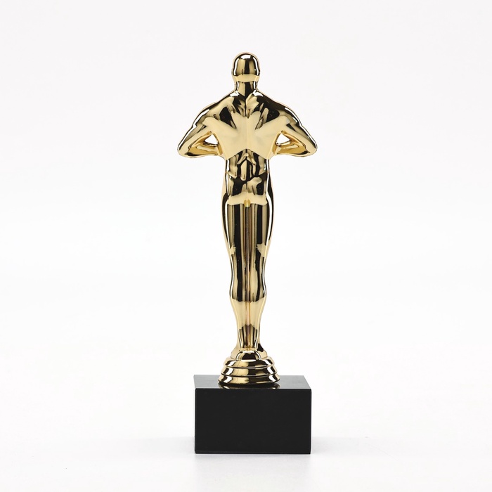 Золотистая фигура «Оскар» с лавровым венком в руках дополнена подставкой из камня. На постаменте есть яркий голографический шильд со званием получателя награды.
