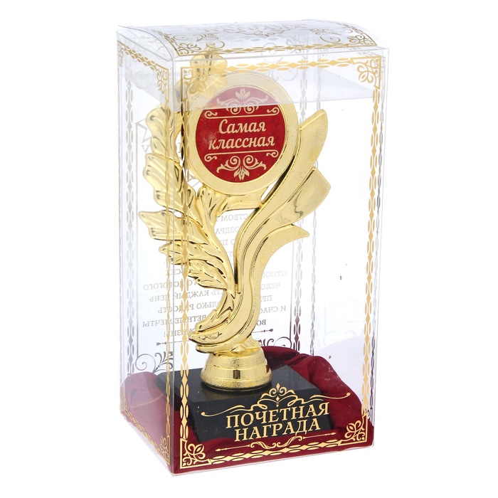 Кубок «Самая классная», наградная фигура, золото, 17.5×9×6.3 см, пластик станет самым лучшим подарком! Эта награда для самых замечательных людей, её нежные лавровые ветки передают всю глубину и теплоту ваших чувств! Он выполнен из пластика, покрыт золотой краской, дополнен яркой цветной бляшкой, из бумаги с голографией. Прозрачная пластиковая коробка с тиснением прекрасно дополняет кубок, а с обратной стороны вы найдёте тёплые слова и пожелания для вашего адресата.