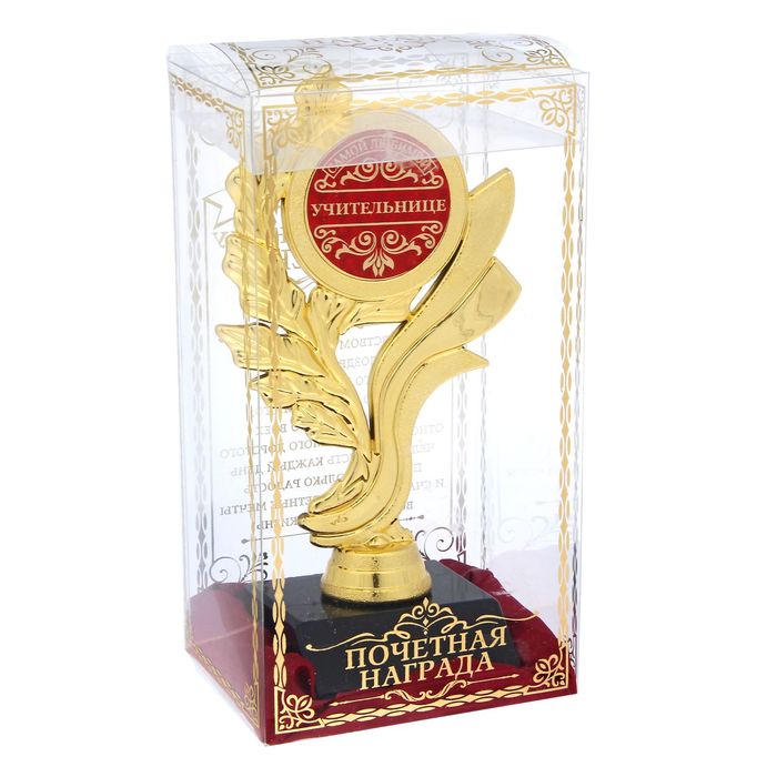 Кубок «Самой любимой учительнице», наградная фигура, золото, пластик, 17,5 х 9 х 6,3 см. станет самым лучшим подарком! Эта награда для самых замечательных людей, её нежные лавровые ветки передают всю глубину и теплоту ваших чувств! Он выполнен из пластика, покрыт золотой краской, дополнен яркой цветной бляшкой, из бумаги с голографией. Прозрачная пластиковая коробка с тиснением прекрасно дополняет кубок, а с обратной стороны вы найдёте тёплые слова и пожелания для вашего адресата.