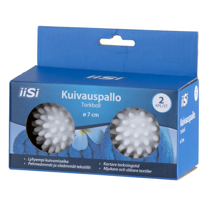 Эти сушильные шары Iisi помогут сделать ваши текстильные изделия мягче и ровнее. При добавлении шаров в сушильную машину время сушки сокращается, белье становится более воздушным, а одежда менее мятой. Шары изготовлены из ПВХ, имеют диаметр 7 см и белый цвет. Их можно использовать при температуре до 80 градусов. В упаковке 2 штуки.