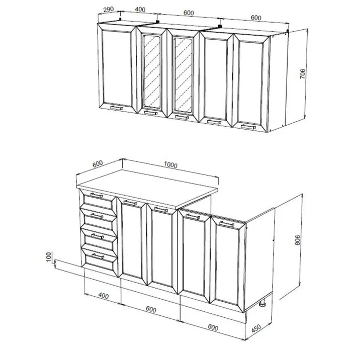 Кухня Агава, 1600х600, Акация белая/Сапфир — Характеристики