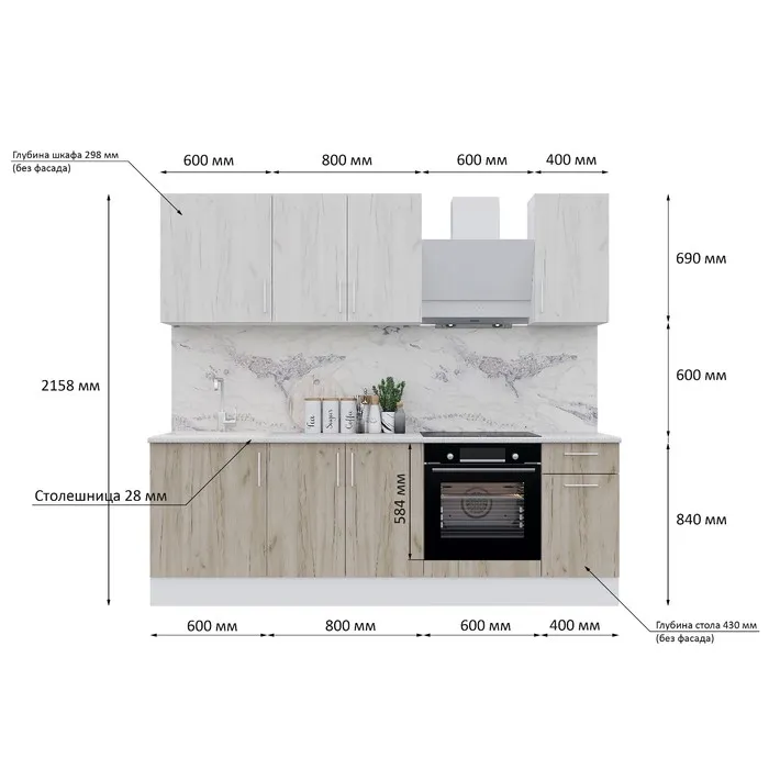 Кухня под встраиваемую технику 2400 Европа, Серый крафт/Дуб белый крафт — Характеристики