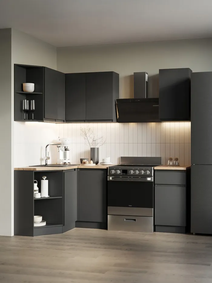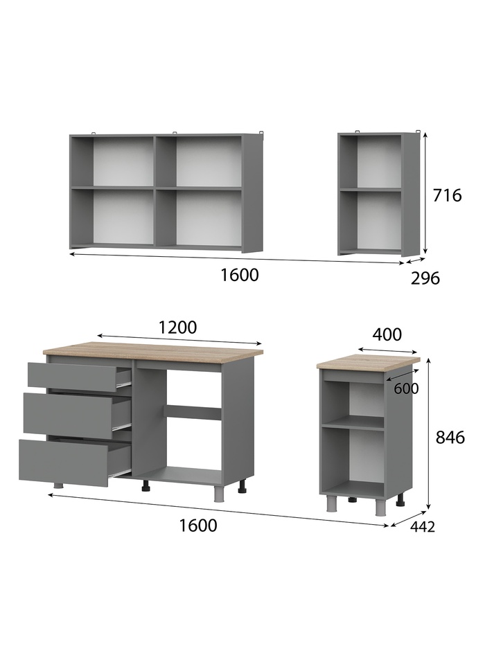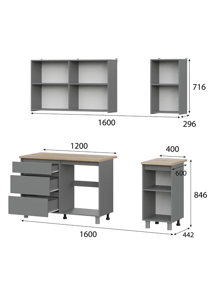Кухня прямая «Денвер», 1600×600×2140 мм, цвет графит — Характеристики