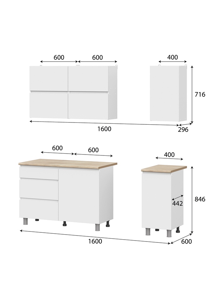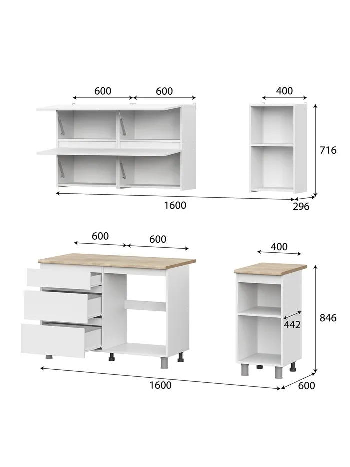 Кухня прямая «Токио», 1600×600×2140 мм, цвет белый — Характеристики