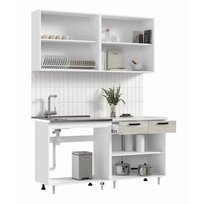 - Габариты нижних модулей: 1600х600х850 (ШхГхВ) с учетом высоты опор и столешницы.