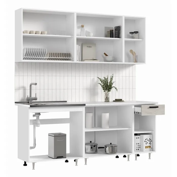 - Габариты нижних модулей: 2000х600х850 (ШхГхВ) с учетом высоты опор и столешницы.