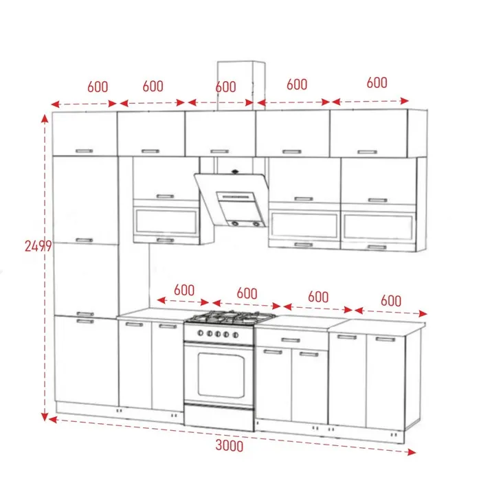 Кухня трёхуровневая в потолок «Техно», 3000 мм, цвет мрамор белый/бетон графит — Характеристики