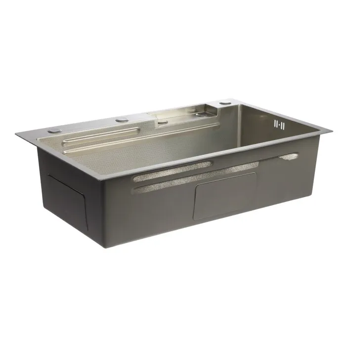 Многофункциональная кухонная мойка ZEIN изготовлена из нержавеющей стали с нано покрытием. Основным преимуществом материала является высокая устойчивость к сколам, царапинам, перепадам температур. Такая сталь не окрашивается, не ржавеет и ценится своей долговечностью.
