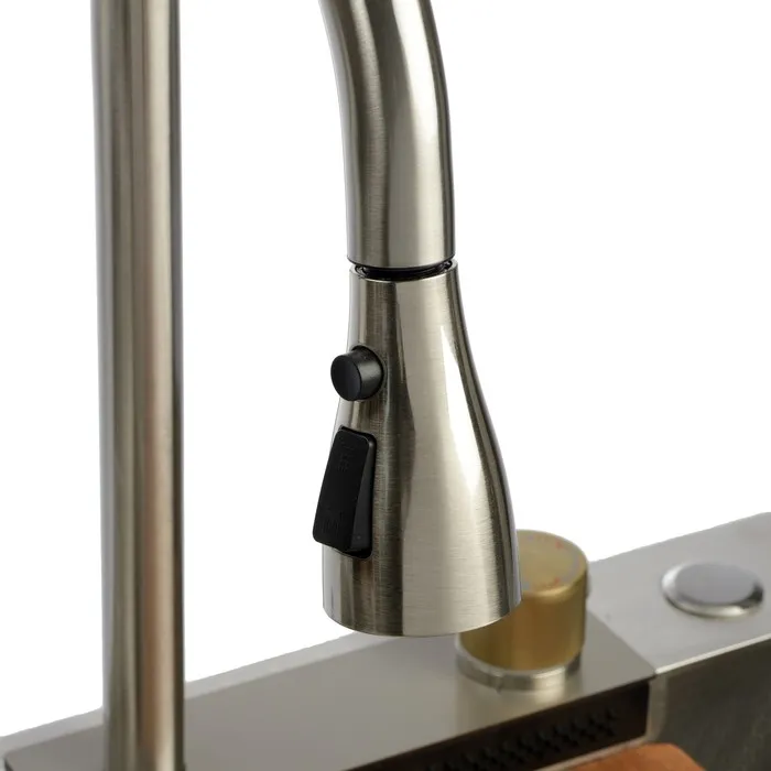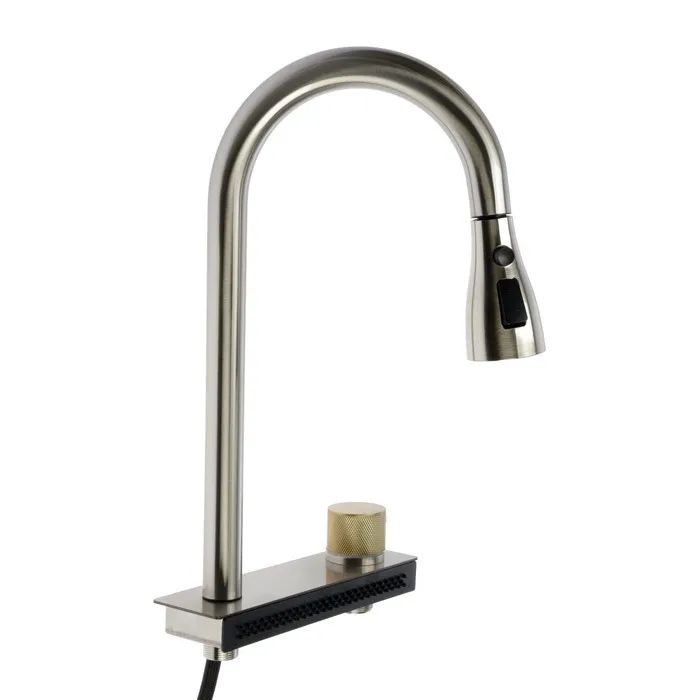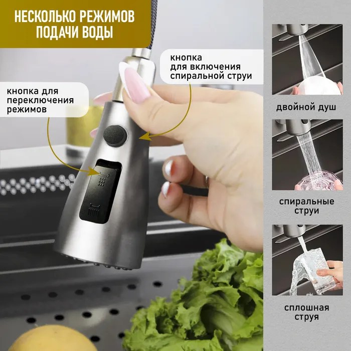 • Смеситель со встроенным выдвижным шлангом и несколькими режимами подачи воды;