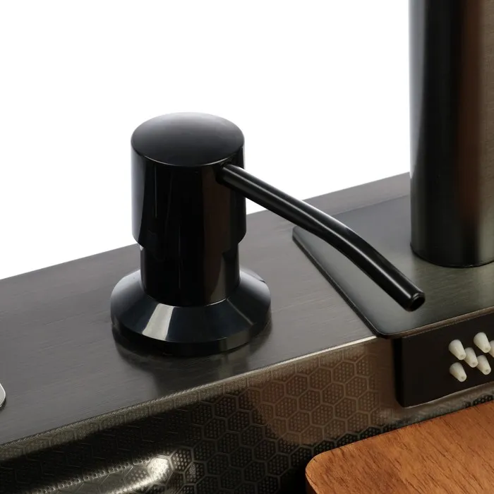 Данная мойка имеет три отверстия для установки дополнительного оборудования. В комплекте уже идут ополаскиватель стаканов и дозатор для моющего средства. Третье отверстие можно использовать для установки крана от фильтра для питьевой воды.
