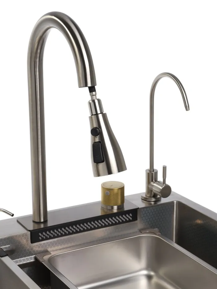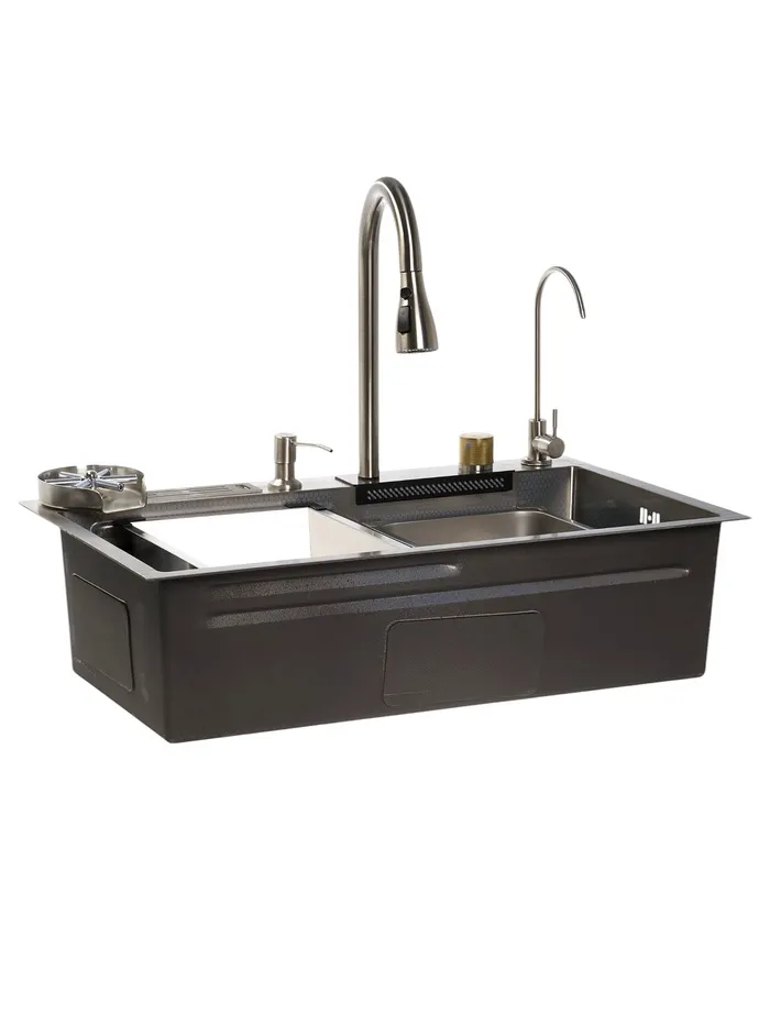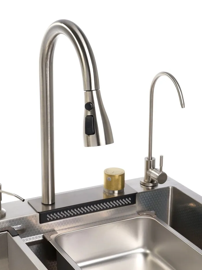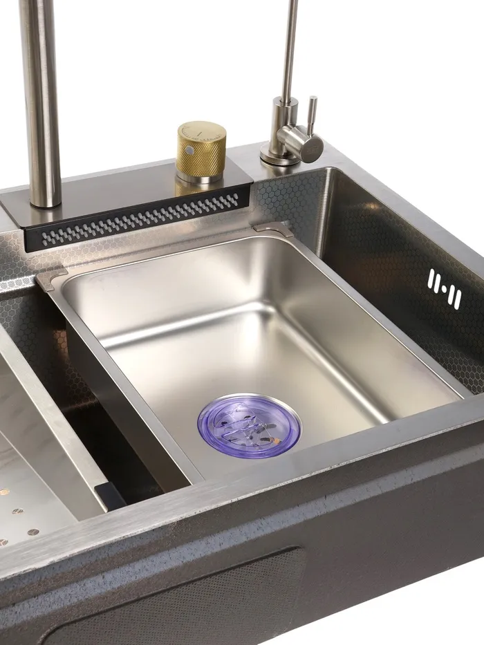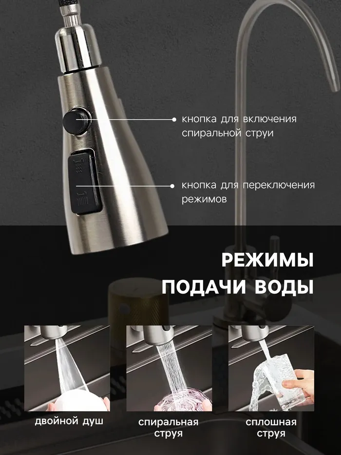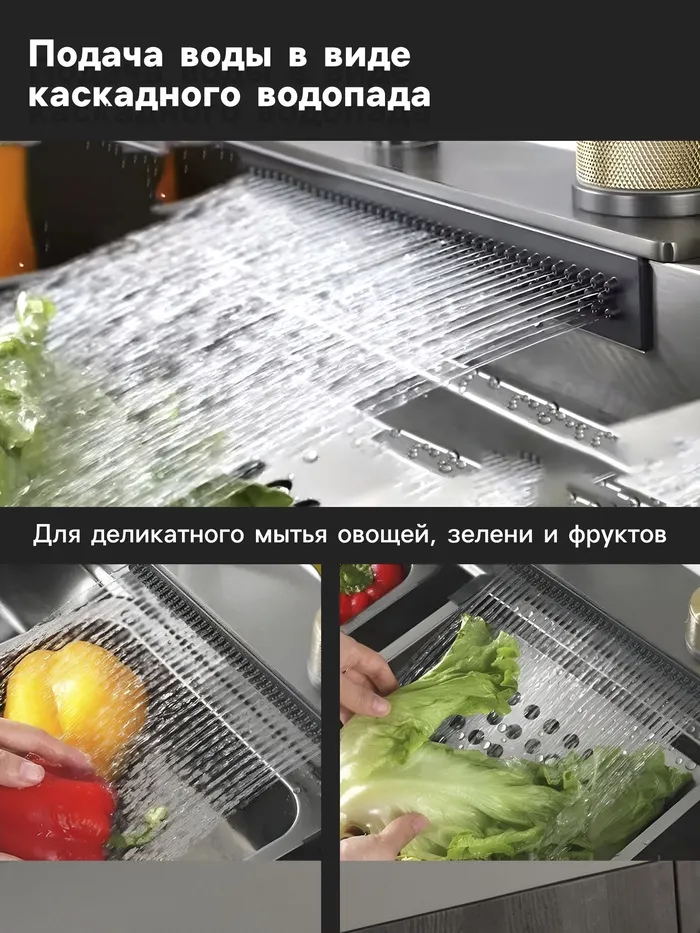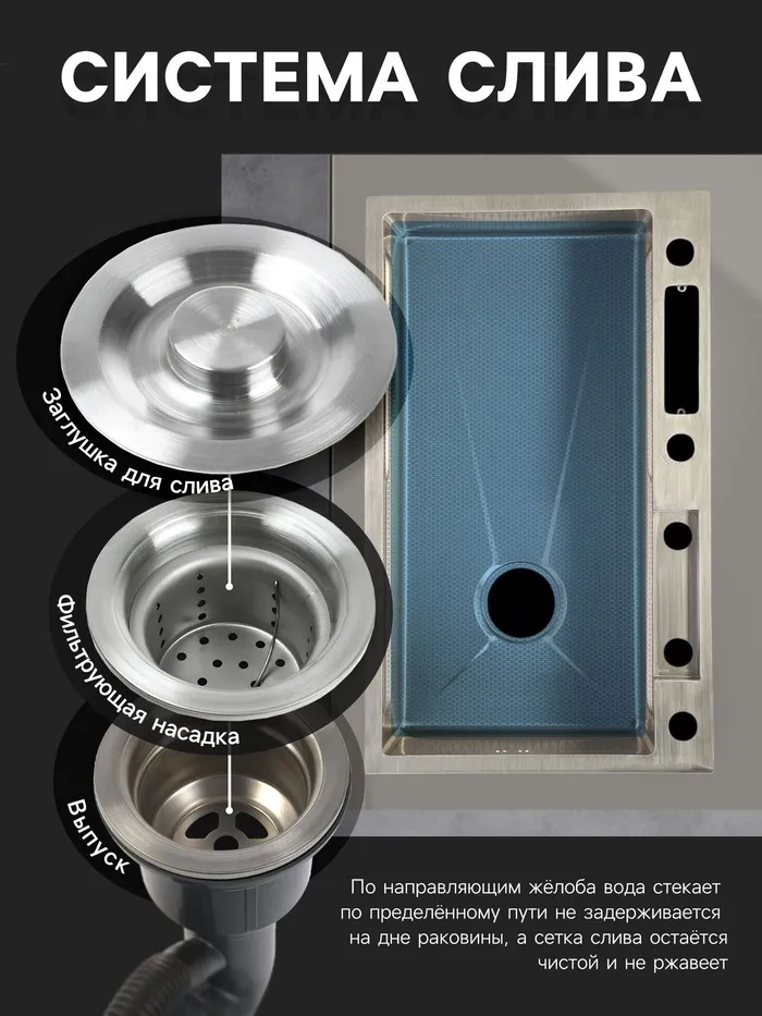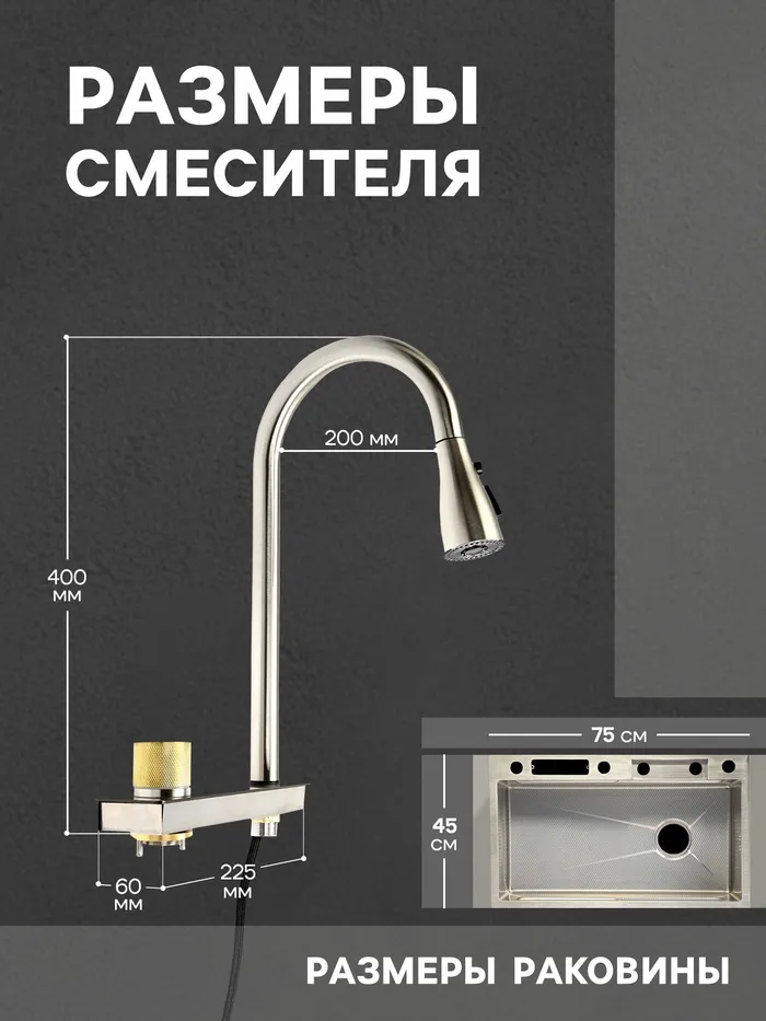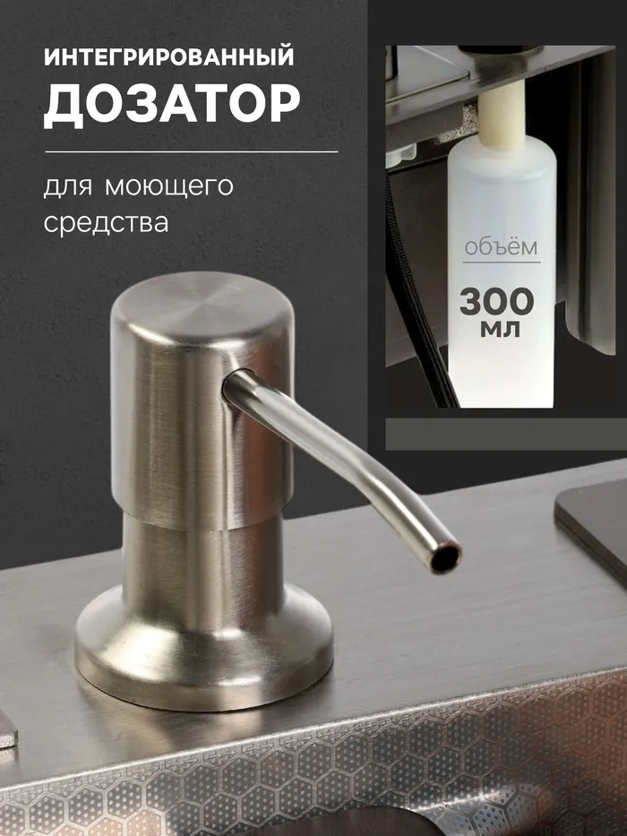 Кухонная мойка ZEIN M05, S=3.0 и 0.7 мм, смеситель, корзины, кран для питьевой воды, сатин — Характеристики