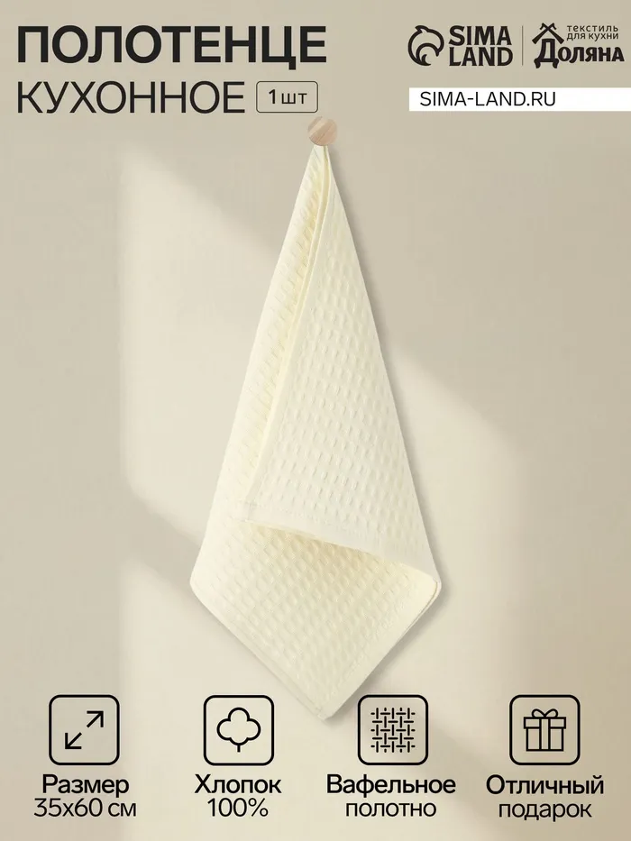 Кухонное полотенце «Доляна», белое, 35×60 см, 100% хлопок, крупная вафля 220 г/м² — Характеристики