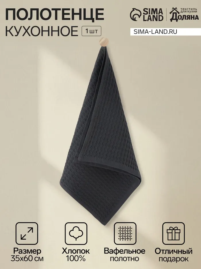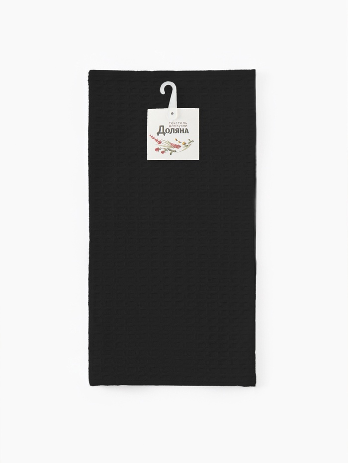 Кухонное полотенце «Доляна», чёрное, 35×60 см, 100% хлопок, крупная вафля 220 г/м² — Характеристики