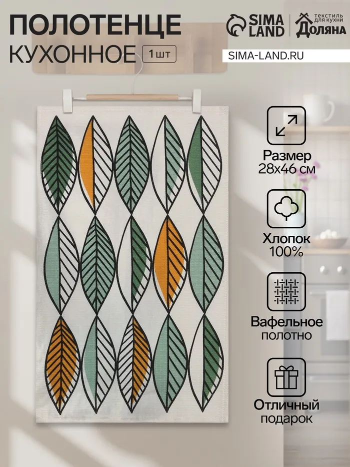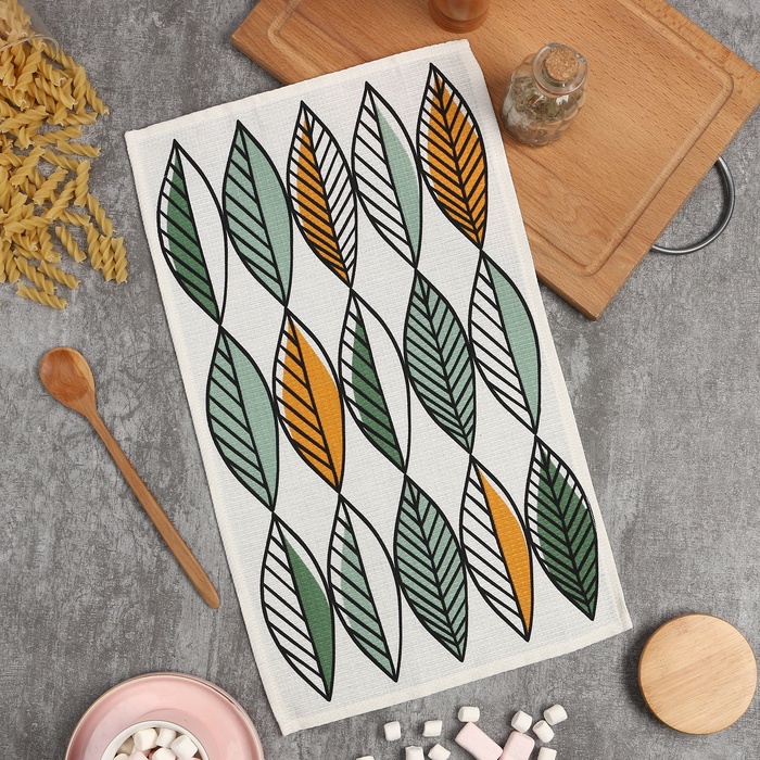 Кухонное полотенце «Доляна. Листья», 28×46 см, 100% хлопок, вафля 160 г/м² — Характеристики