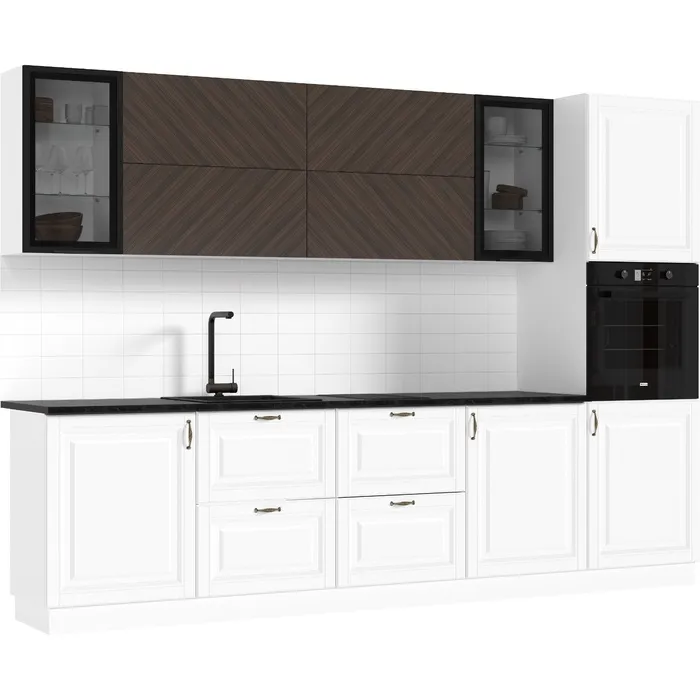 Кухонный гарнитур 3000 Престиж, Белый/Браш вайт/Прайм орех — Характеристики