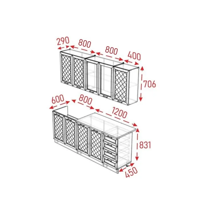 Кухонный гарнитур Агава 2000, Белый/Лиственница светлая — Характеристики