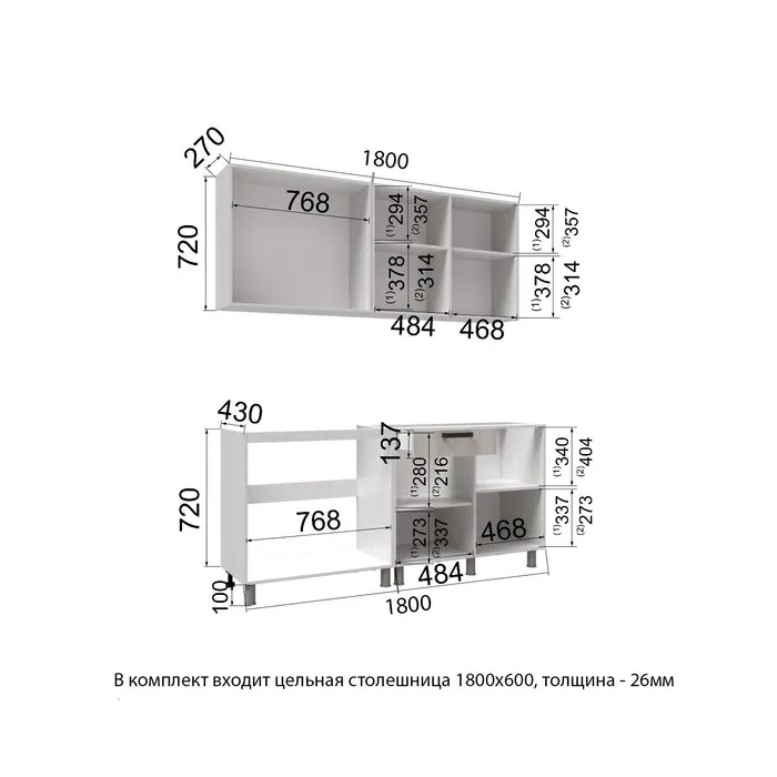 Размер кухни: 1800