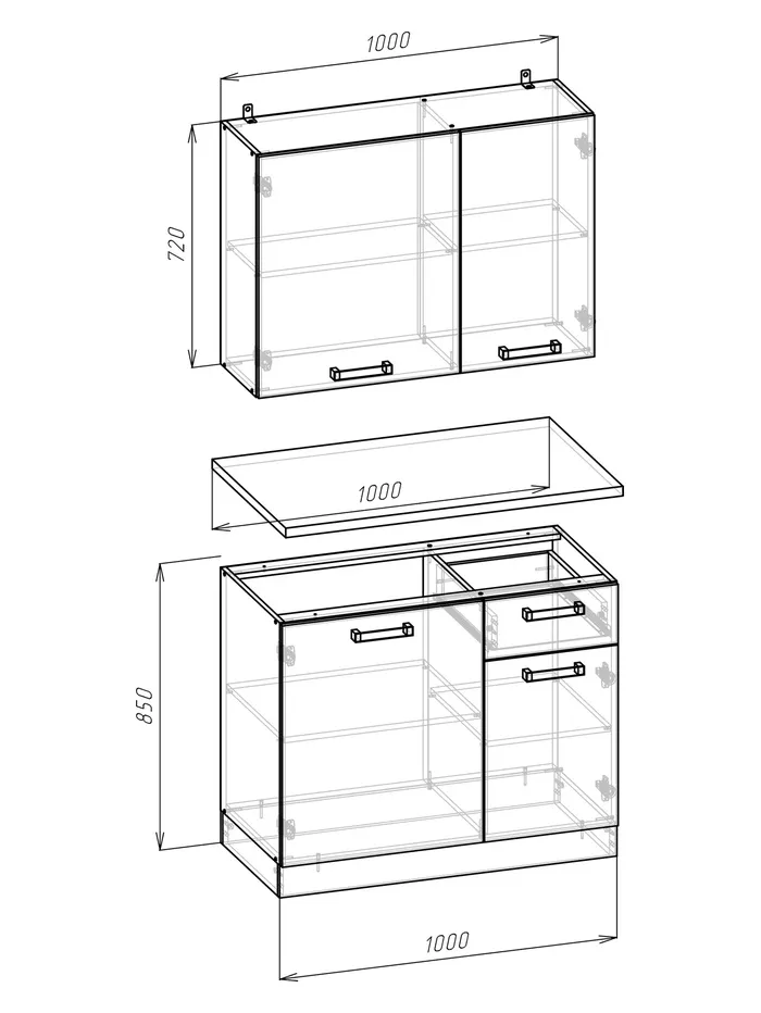 - Компактность: размеры 1000×600 мм позволяют разместить гарнитур даже в самой маленькой кухне, не занимая много места.