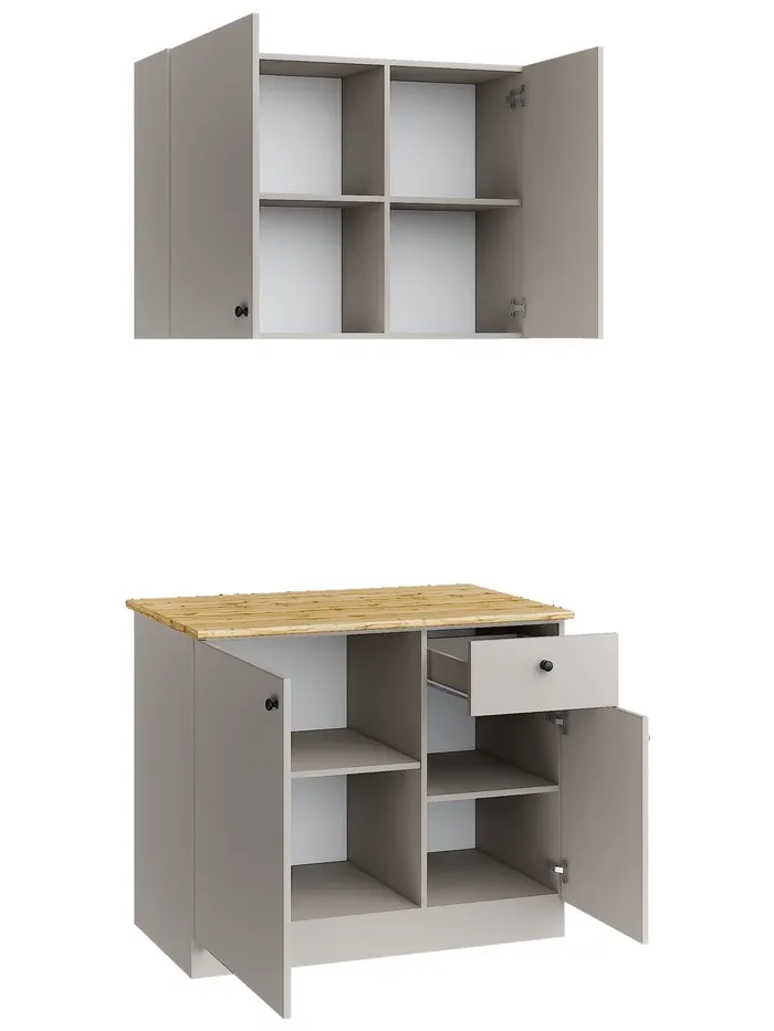 Решение для тех, кто хочет максимально эффективно использовать пространство без ущерба для стиля и функциональности. С фасадом цвета кашемр, столешницей в оттенке дуба вотан и современным дизайном, гарнитур станет центральным элементом вашей кухни.