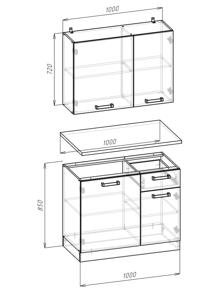 - Компактность: размеры 1000×600 мм позволяют разместить гарнитур даже в самой маленькой кухне, не занимая много места.