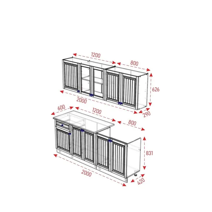 - Размер кухни: 2000х600.