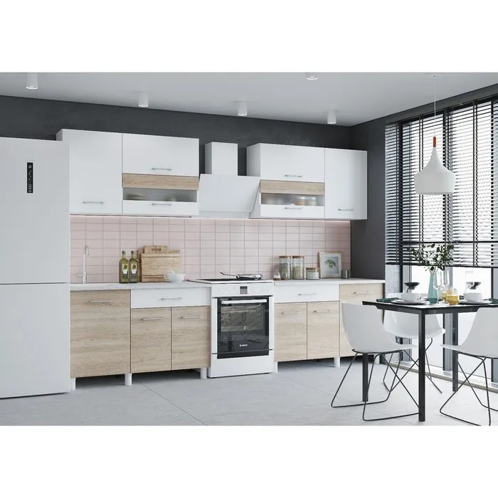 Кухонный гарнитур Хозяюшка, 2000х600х2100, МДФ, Белый/Трюфель — Характеристики