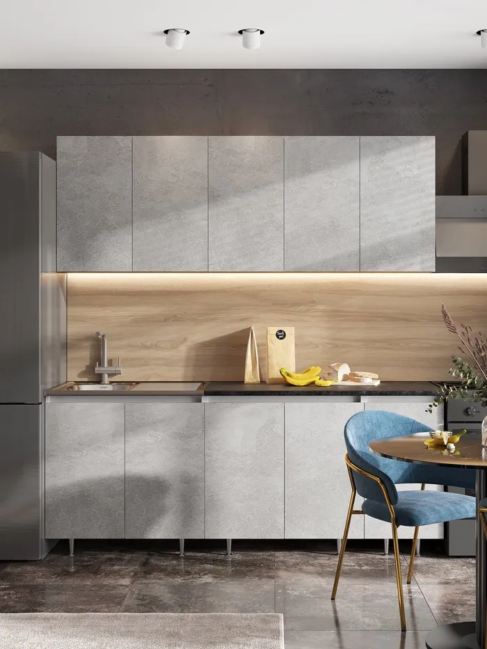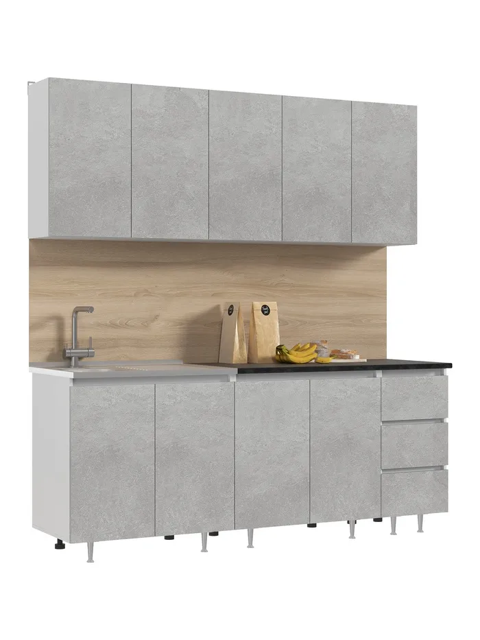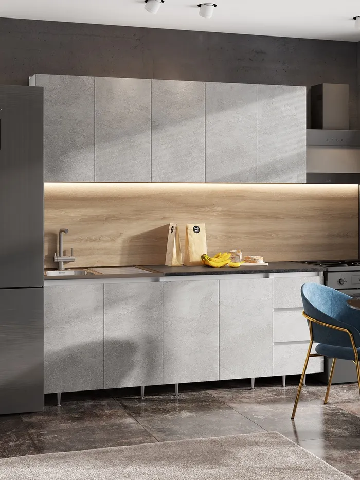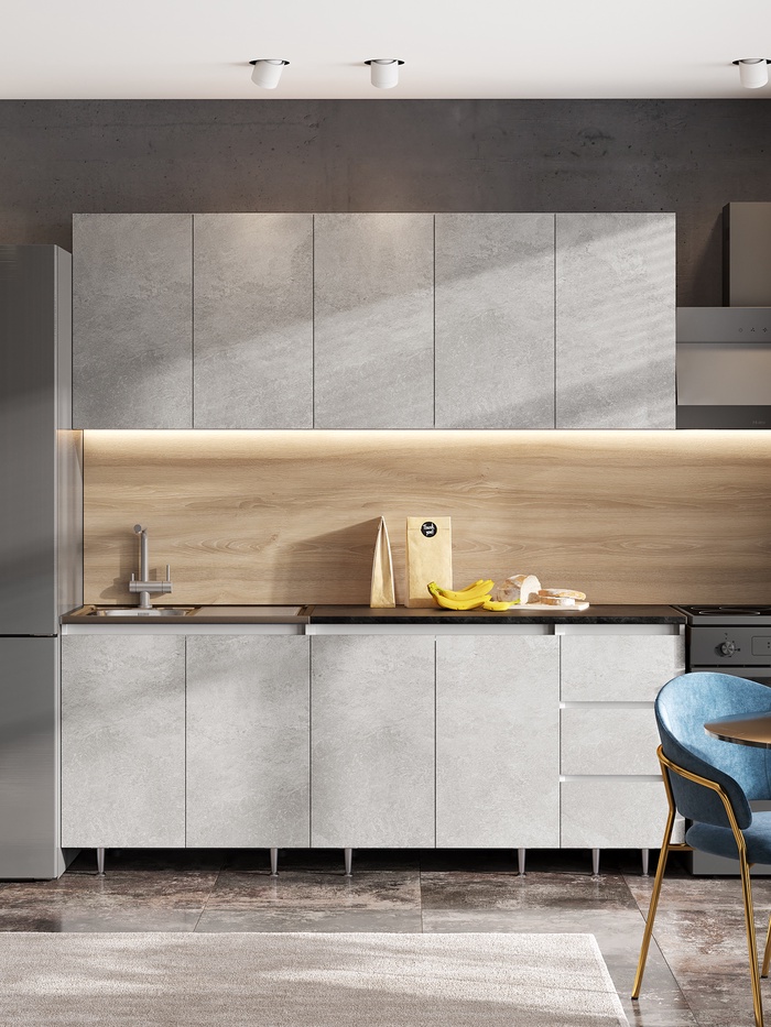 Кухонный гарнитур прямой «Челси», 2000 мм, цвет бетон светлый/белый/кастилло — Характеристики