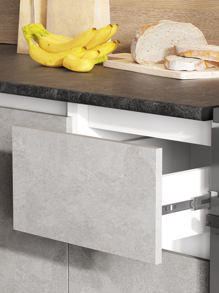 Можно использовать специальные органайзеры и лотки для столовых приборов, что позволяет рационально использовать место и хранить приборы в порядке и чистоте.Шариковые направляющие обеспечивают полное и бесшумное открывание ящиков, облегчая ежедневное пользование.