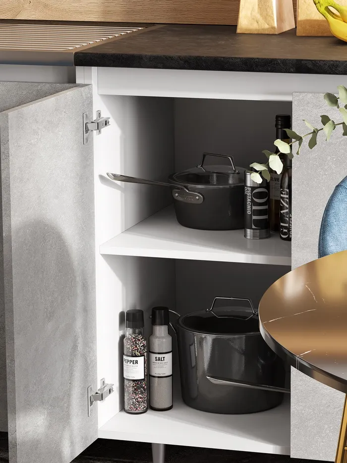 Освобождает рабочую поверхность, предоставляя дополнительное место для хранения. Разнообразие мест для хранения позволяет эффективно организовать пространство и поддерживать порядок на кухне.