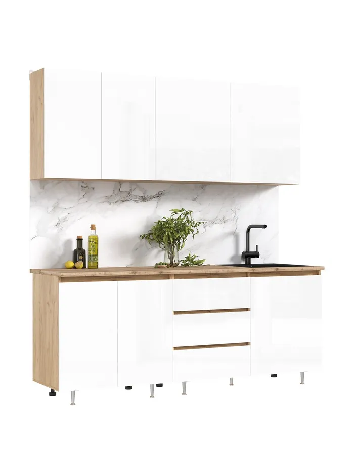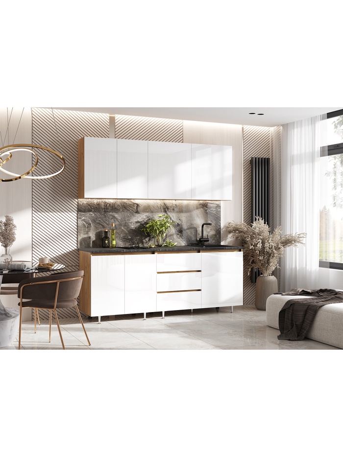 Кухонный гарнитур прямой «Челси №2», 2000 мм, цвет белый глянец/дуб крафт/кастилло — Характеристики