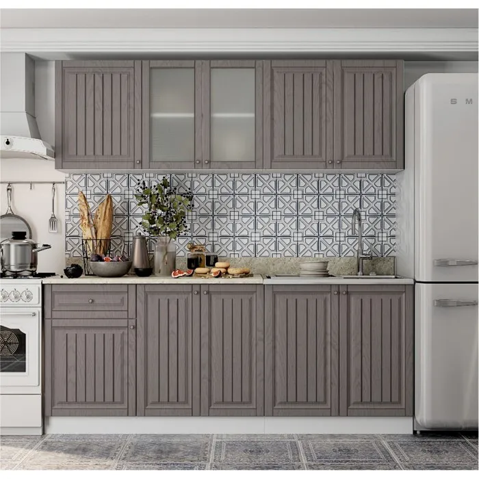 - Качественные материалы: корпус из ЛДСП, фасады из МДФ с фрезеровкой