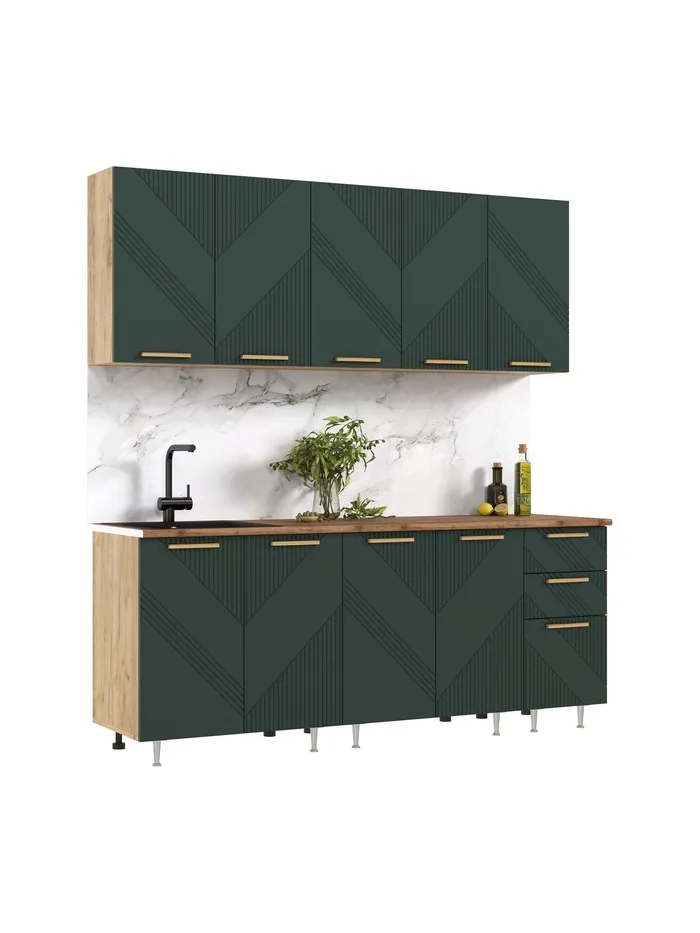 Кухонный гарнитур прямой «Ирис», с столешницей, 2000 мм, цвет браш мени грин МДФ/дуб крафт — Характеристики