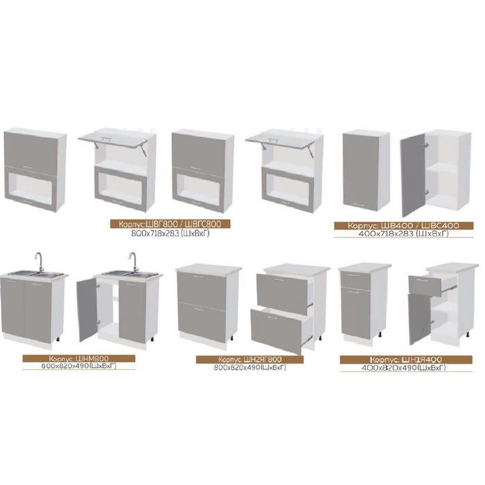 Для данного гарнитура необходима накладная кухонная мойка, размер мойки 800×600 мм (ширина×глубина).