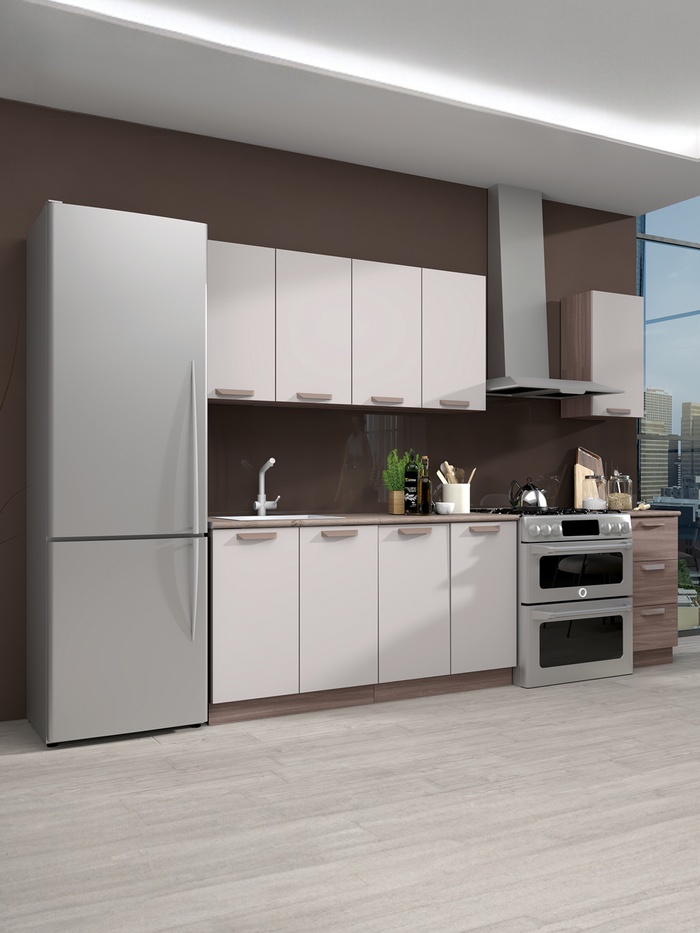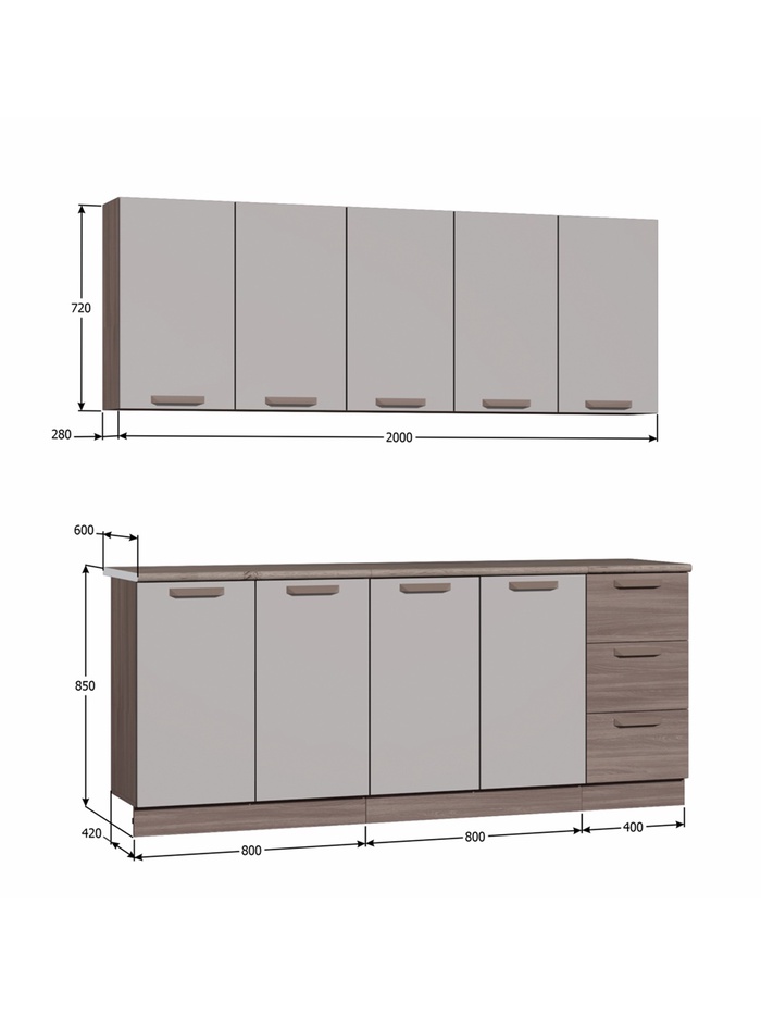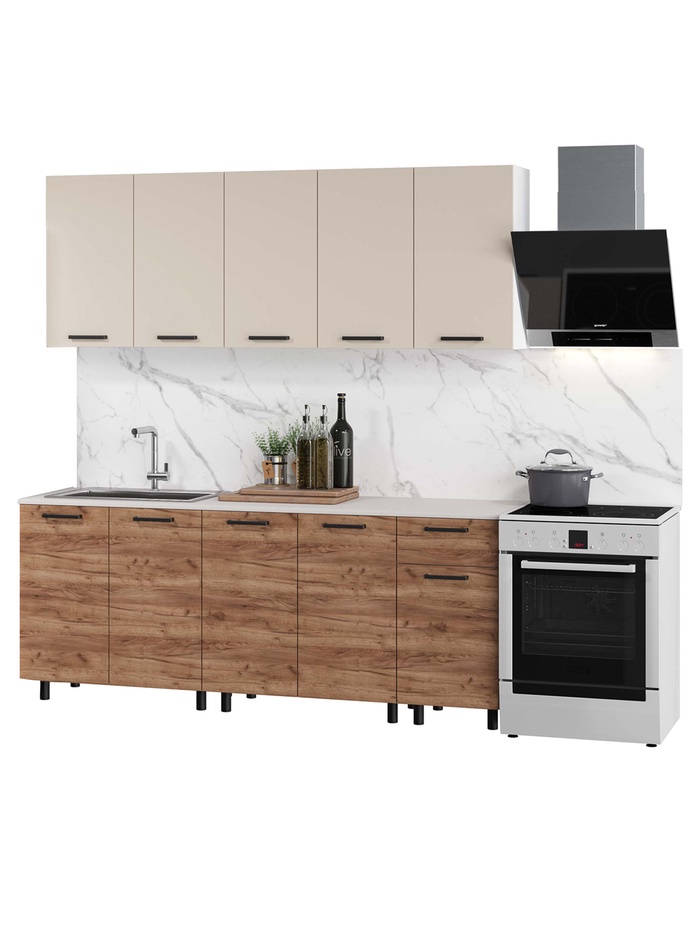 Кухонный гарнитур прямой «Ника», 2000 мм, цвет шимо тёмный/кашемир/дуб кера — Характеристики