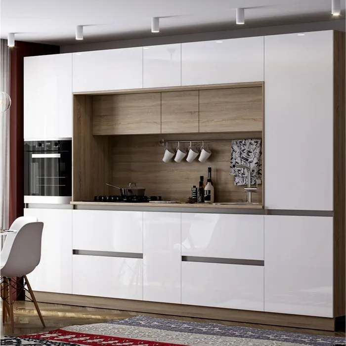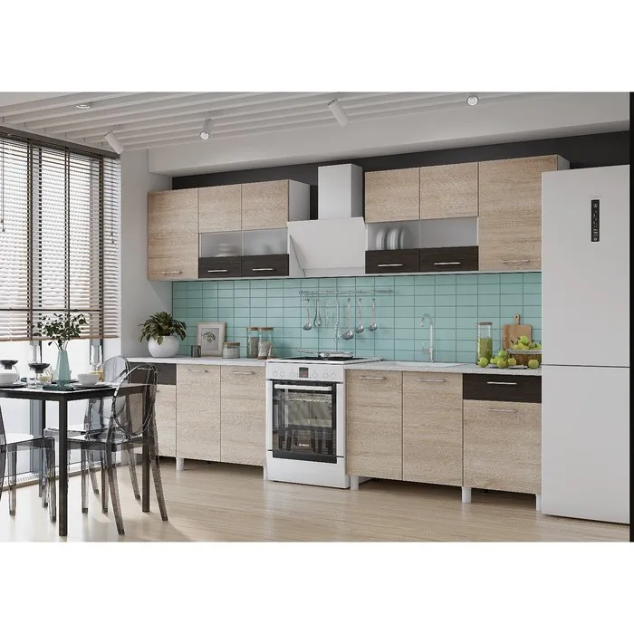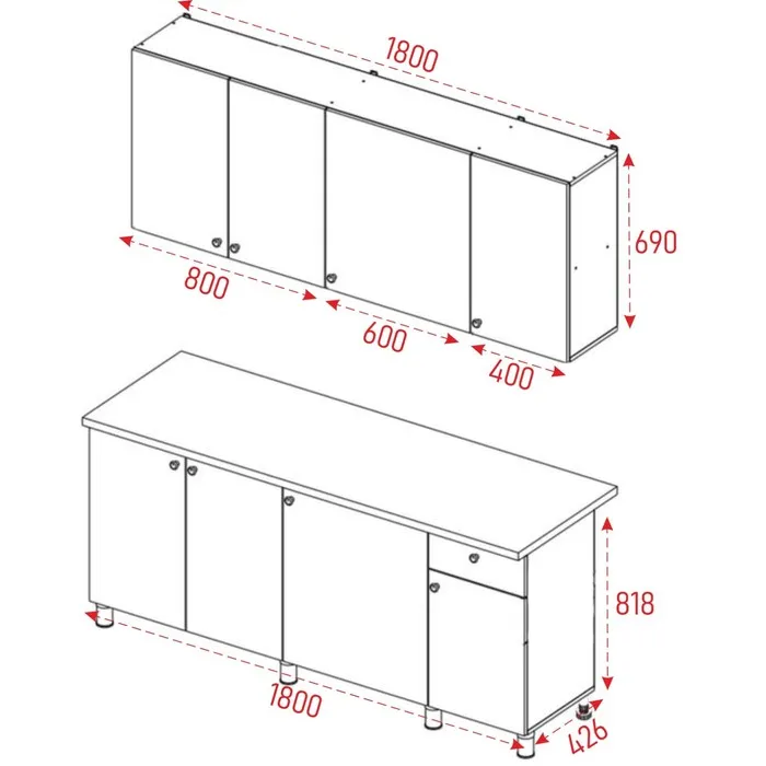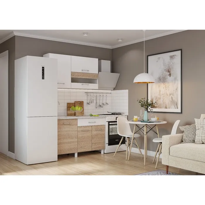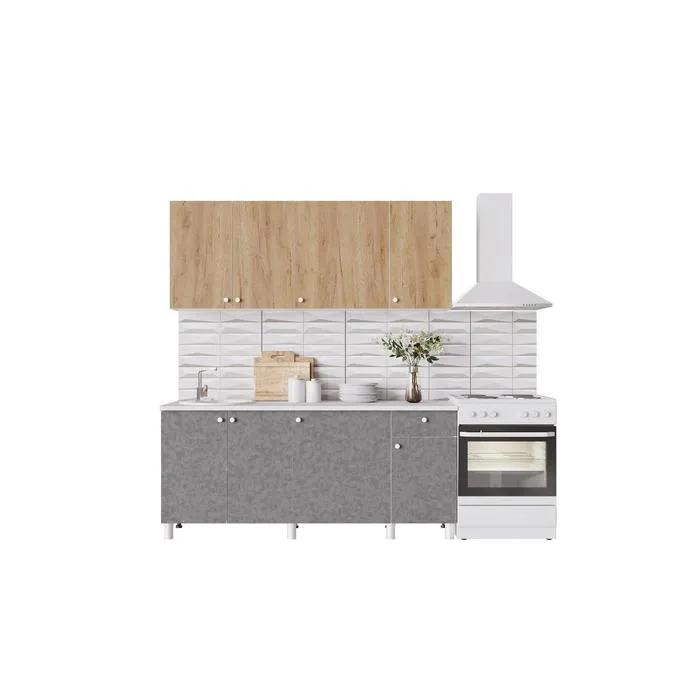 Кухонный гарнитур прямой «Поинт», 1800 мм, цвет бетон/золото фасад/белый корпус — Характеристики