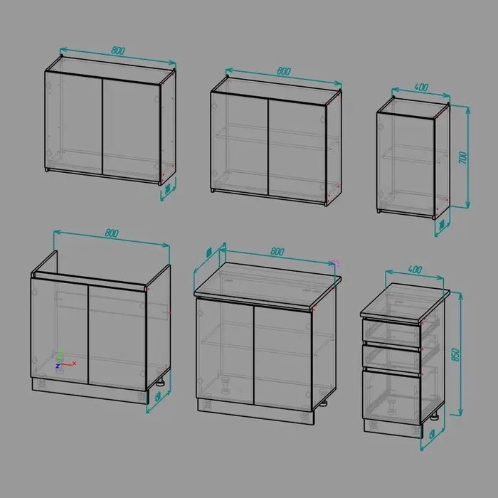 - Верхние шкафы: позволяют правильно распределять кухонную утварь и продукты питания, экономя пространство и облегчая процесс приготовления еды.