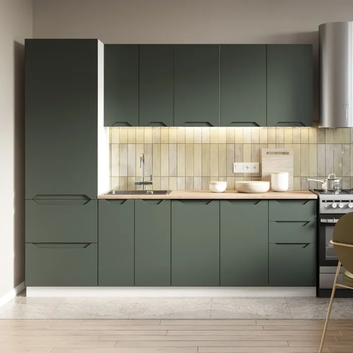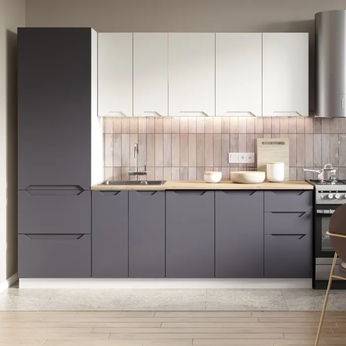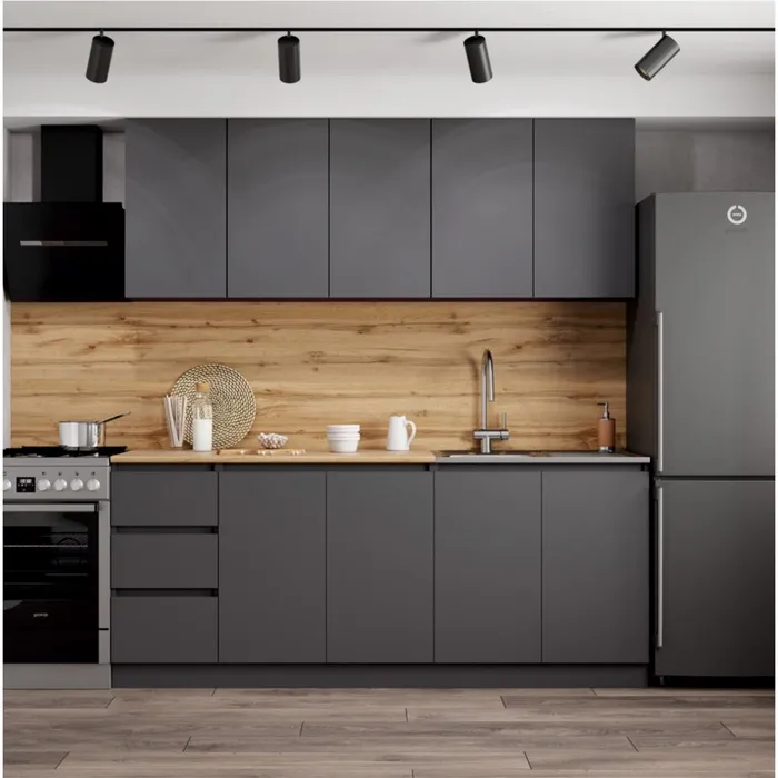 Кухонный гарнитур Стиль 1600 - это идеальное решение для функционального обустройства кухни. Изготовленный из высококачественных материалов, таких как ЛДСП толщиной 16 мм, кухонный гарнитур сочетает в себе современный дизайн и практичность. Уникальной особенностью модели являются ящики без ручек, которые подчеркивают стиль минимализма.