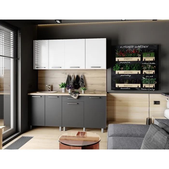 Кухонный гарнитур «Стиль», 1600 мм, цвет дуб крафт золотой/белый/чёрный — Характеристики
