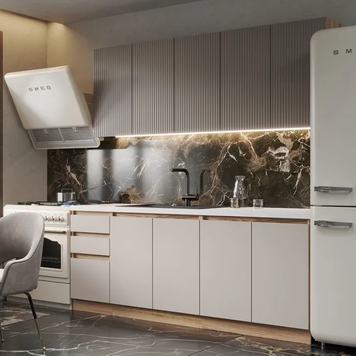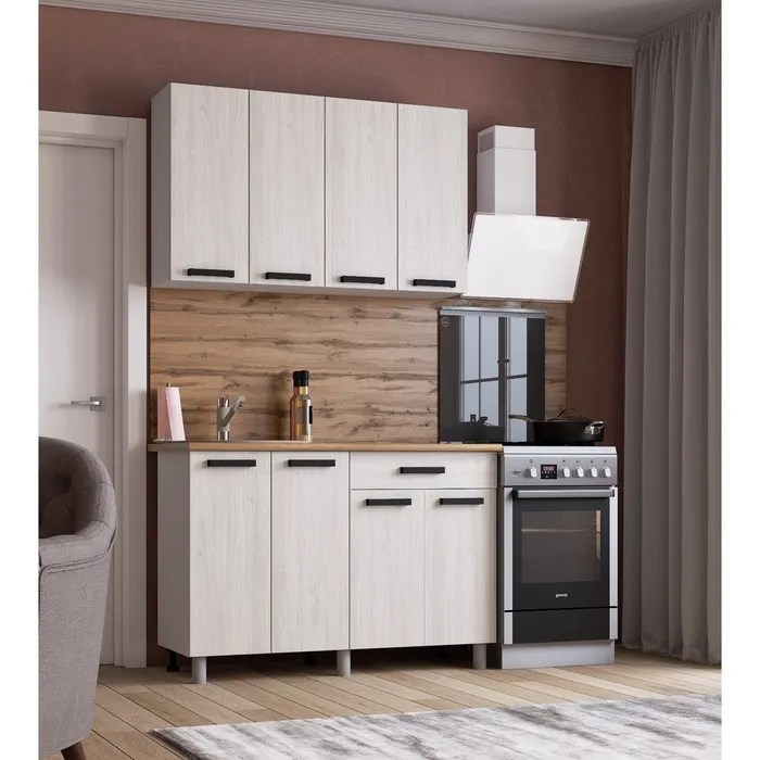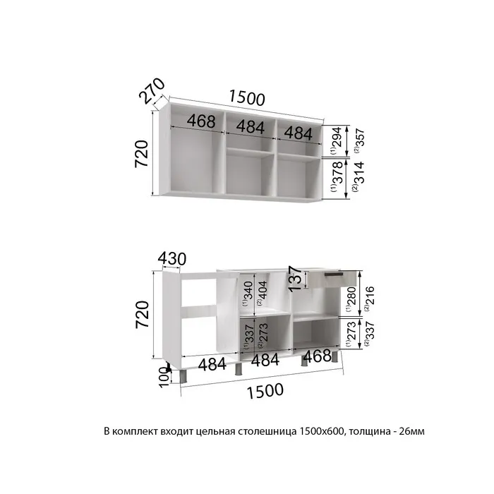 Кухонный гарнитур Тоскана, 1500х600, Белый/Белый/Графит/Мраморный берег — Характеристики
