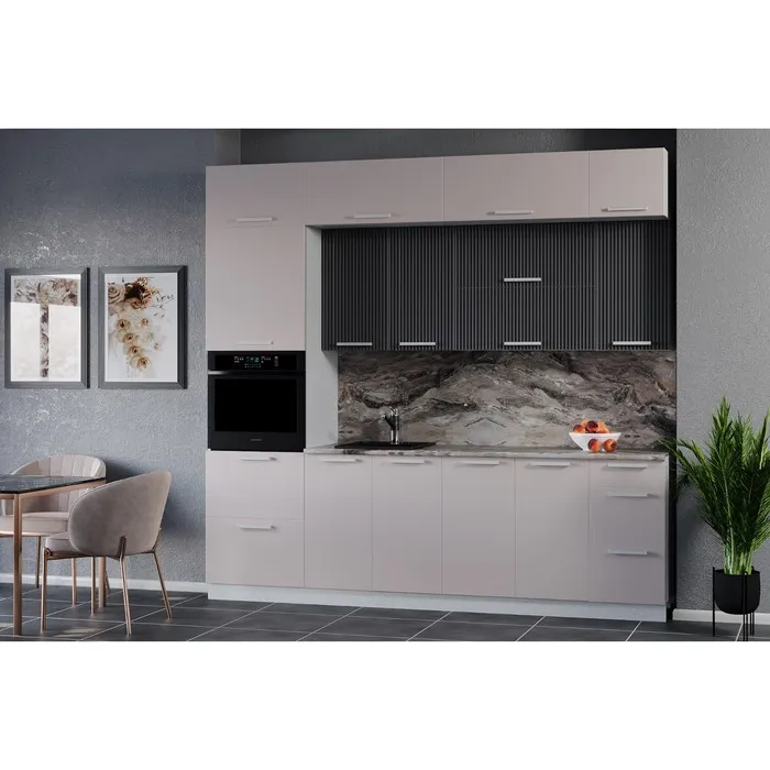 Кухонный гарнитур трехуровневый под потолок Кристен 2600, Белый/Графит — Характеристики