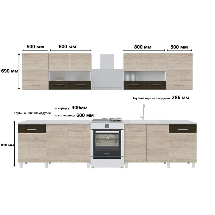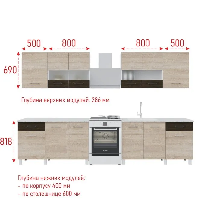 Кухонный гарнитур Тренд 2600, Белый/Венге/Сонома — Характеристики