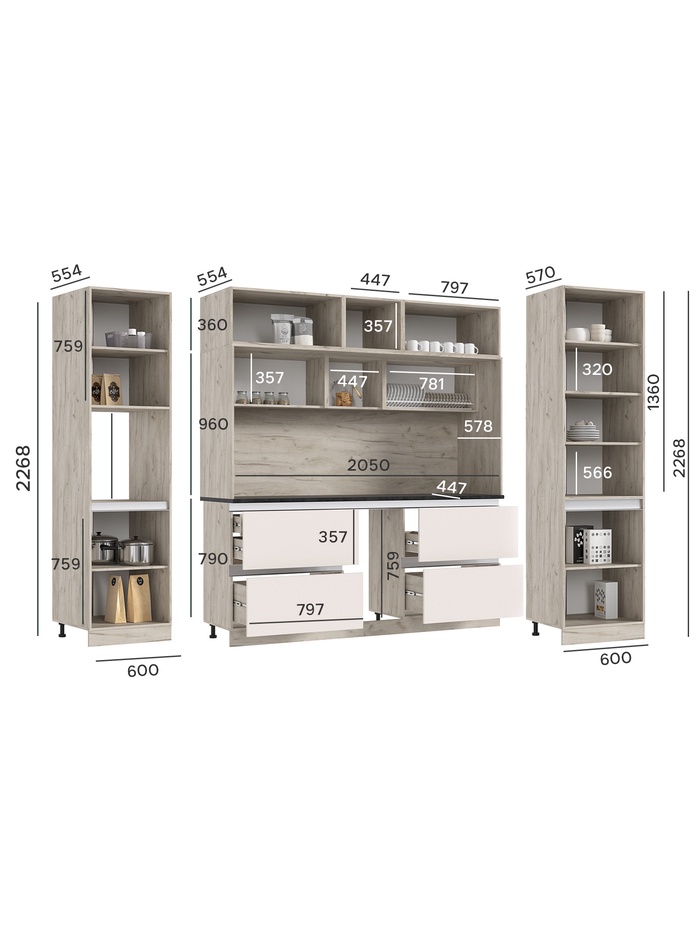Кухонный гарнитур трёхуровневый «Карина», под посудомоечную машину, 3250 мм, цвет кашемир/крафт серый — Характеристики