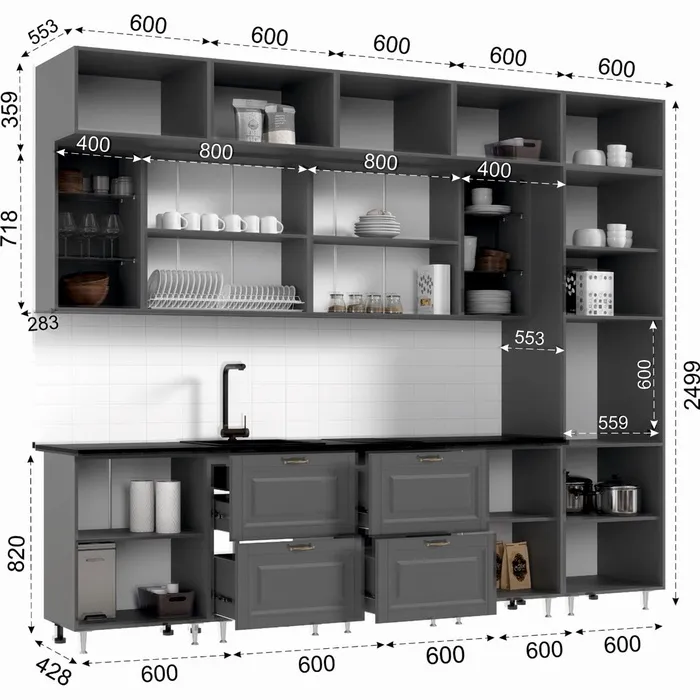 - Высота кухонного гарнитура - 2499 мм.