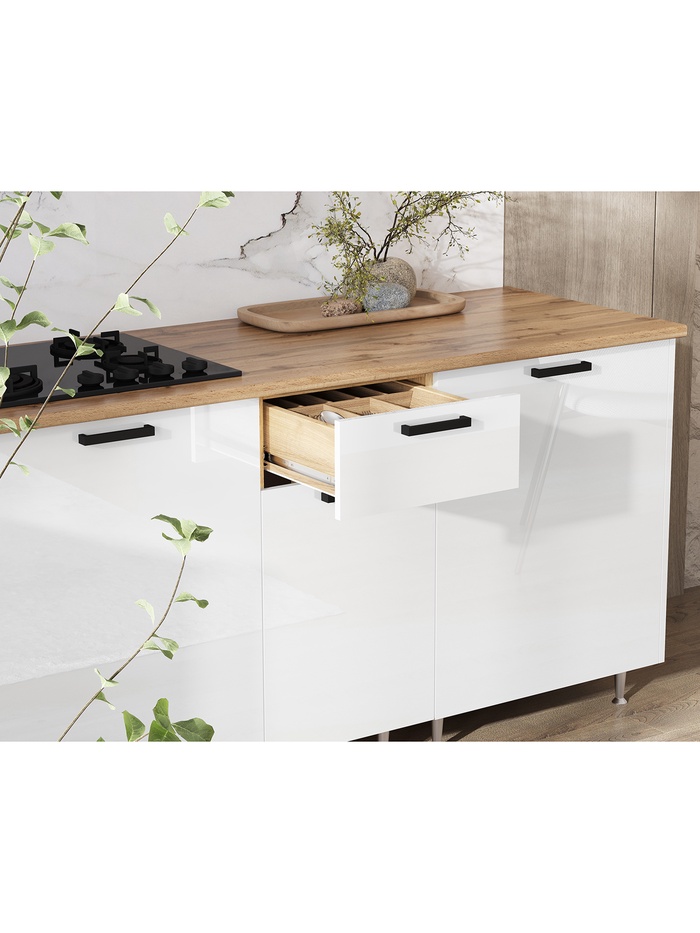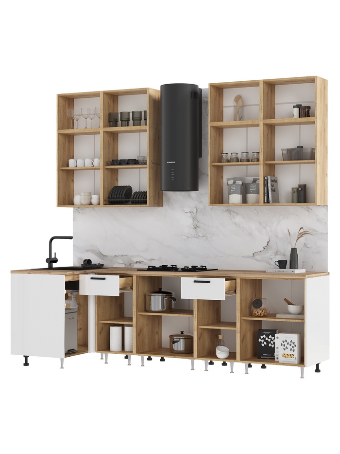 Набор мебели, предназначенный для обустройства кухни. Создан с учётом основных потребностей к кухонной мебели. Гарнитур обеспечивает утилитарность кухни, позволяя хранить продукты, посуду и кухонные принадлежности по местам, организует рабочее пространство для приготовления пищи. Поможет поддерживать порядок на кухне и делает процесс приготовления еды более комфортным и приятным.