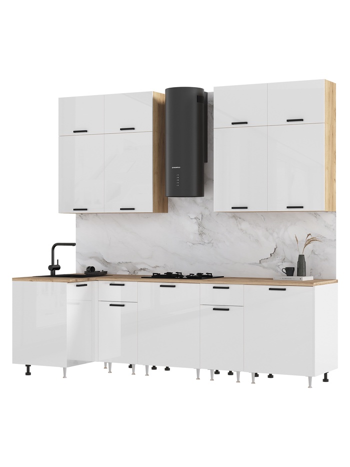 Кухонный гарнитур угловой «Рио» New, 1000×2600 мм, цвет белый глянец/дуб крафт/дуб вотан — Характеристики