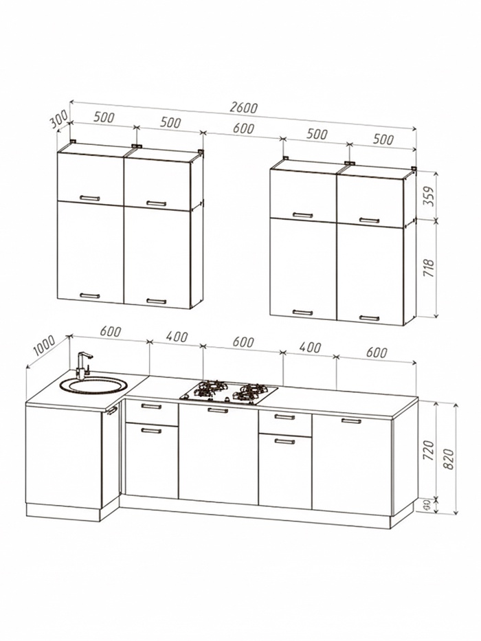 Размер кухни: 1000 х 2600